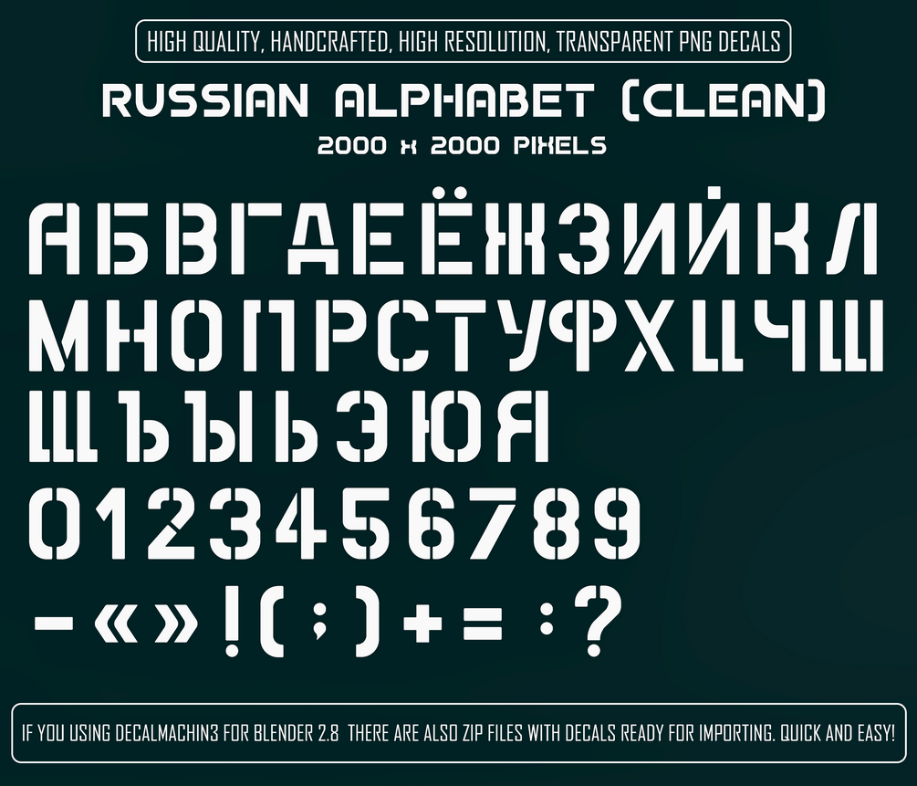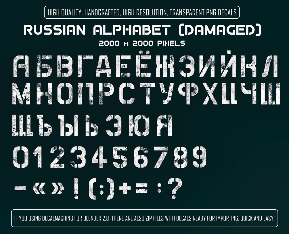 - Russian Alphabet (clean and damaged versions)