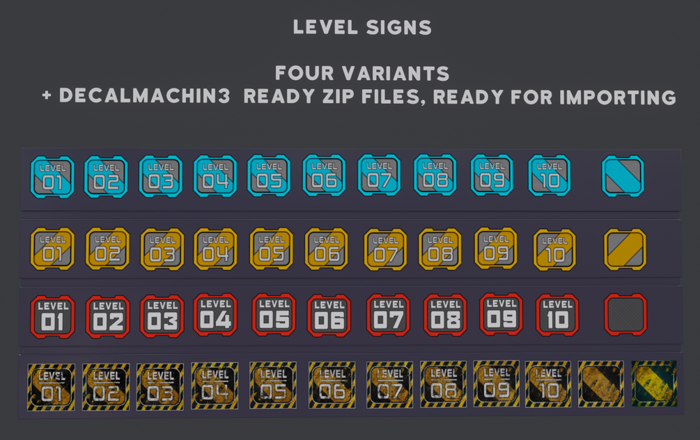 Level Signs (3 versions - Red, blue and damaged)